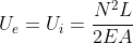 Door het bovenstaande te substitueren in de uitdrukking van de arbeid kunnen we de de vervormingsenergie in de constructie uitdrukking in functie van de interne krachten: